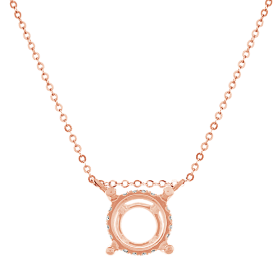 This lovely pendant is crafted from quality 14 karat rose gold, hangs from a matching adjustable 18-inch cable chain and is secured with a lobster clasp. Simply pick the 2.75 carats round gemstone of your choice to complete the look. This piece features sixteen round natural diamonds, at approximately .05 carat total weight. For more information on selecting your center stone, Live Chat or call an online customer service representative at 1-866-467-4263, or visit one of our store locations.