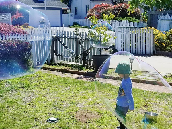 “Giant bubbles were a hit! We’re realizing how much we used to go out, and how lucky we are to have temperate weather and a yard so we don’t go crazy. #stayhome doesn’t mean that you can’t go outside and create #meaningfulmoments while keeping a safe distance from others. ?” – @fairlybrutal