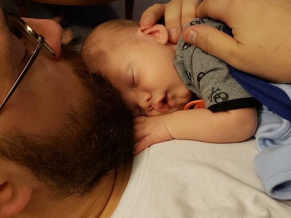 “My husband, snuggling our final baby, Sullivan. It means a lot to us to have come this far. With me suffering a huge loss in my past and being told the chances of having children are slim? We came out on top with not one, not two, but three healthy pregnancies. Not everyone is so lucky to just have effortless or noncomplicated pregnancies. I count my lucky stars every single day.” – @moonlitjoy