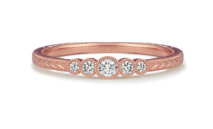 Vintage, yet chic. Bezel-set stones are surrounded partially or entirely by a metal rim. A great advantage of this setting is that it protects the stone’s girdle (the outer edge of the stone) from being nicked or chipped, ensuring a worry-free lifetime of sparkle.