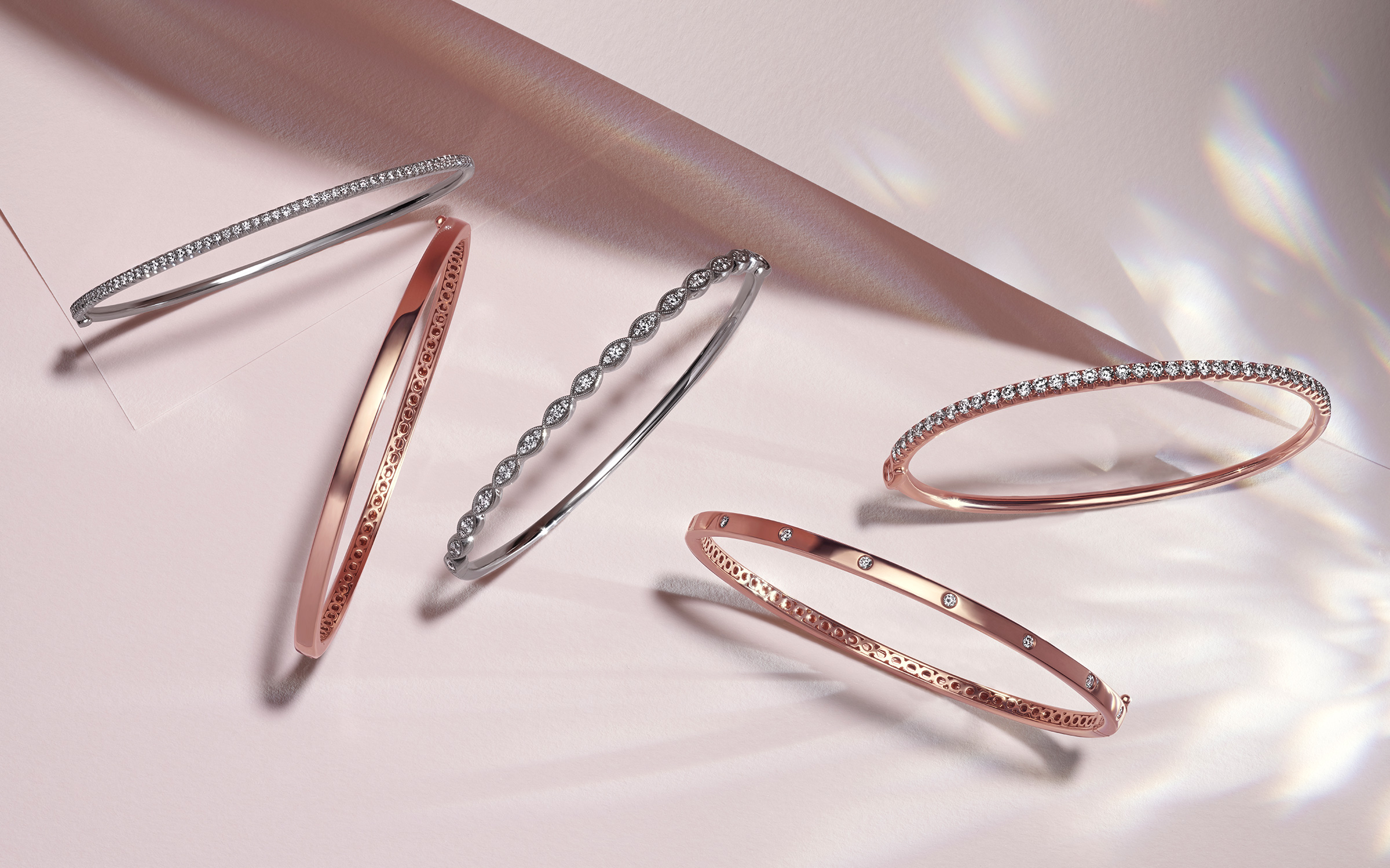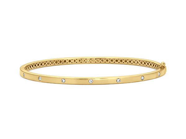 You’ve probably seen the bangle bracelet trend popping up on social media over the last few years — a gorgeously layered arm featuring sparkling, twinkling bracelets that perfectly mix and match. At Shane Co., we love bangle bracelets because they can be worn together or apart to create a unique look that goes with any outfit. Whether you’re dressing up for a fancy event or just looking to add a little glamour to your everyday T-shirt and jeans, bangle bracelets provide the perfect opportunity to show off your personal style.