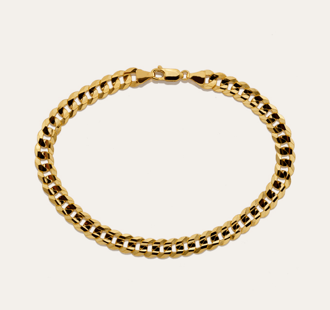 A curb chain is made of rounded links that are slightly twisted to lie flat against one another. This is a very popular style of bracelet for men who want to amp up their wardrobe. We love a curb bracelet that coordinates with any rings or chain necklaces he wears.
