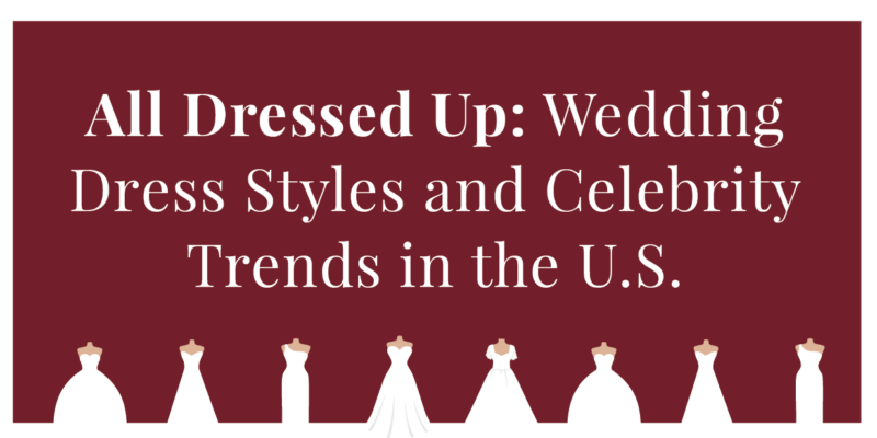 From the ornate ball gowns of the 1950s to the absurdly puffy sleeves of the 1980s, wedding gowns have always mirrored popular fashion trends, and brides often look to celebrity wedding gowns for inspiration. This got us wondering — what are the most popular wedding dress styles of today? Do they vary from state to state? And what celebrity wedding dresses remain at the forefront of the industry?