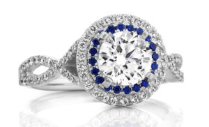 Does your style fall more on the modern side? A halo design will give you the look you’re going for! Featuring a shimmering halo of diamonds surrounding a center stone, this setting makes your center stone appear larger.
