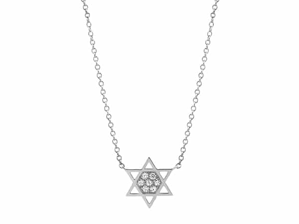 Seven round diamonds offer a hint of gorgeous sparkle in this beautiful Diamond Star of David Necklace. Made from our 14k white gold, this necklace hangs from an 18-inch cable chain that can be adjusted down to 16 inches for ultimate wearability.