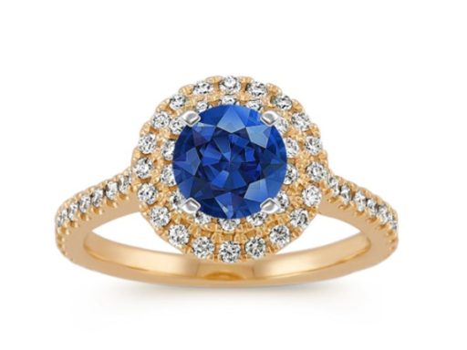 For this show-stopping Round Double Halo Engagement Ring set with a 5.8mm (.89 carat) round traditional blue sapphire, your engagement ring would cost a total of $3,645. By making monthly payments of $304 to your card for 12 months, it’ll be all yours! Pay down half, and your payments come out to only $152.