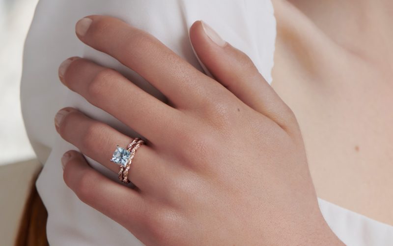A newly popular stone, aquamarine shines a light blue and will look gorgeous with any engagement ring setting. Named after the ocean because of its calming color, aquamarine is strong enough to wear as a ring, though not as strong as diamond or sapphire, rated a 7.5-8 on the Mohs scale. It was often used by fishermen for protection at sea and is perfect for a unique look, even if you’re not a big swimmer.