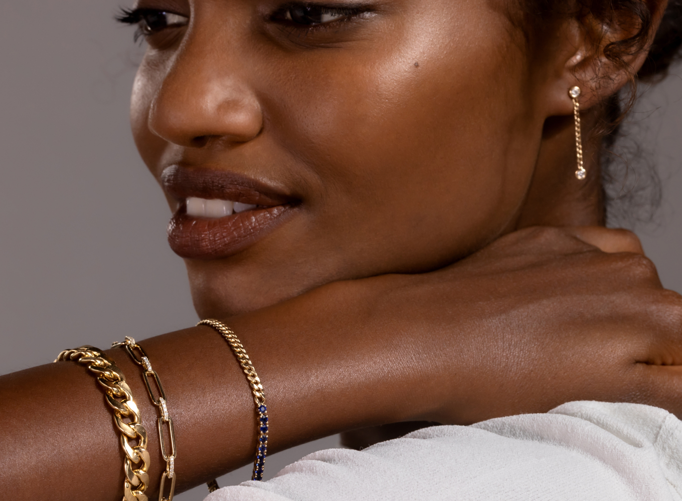 Why not pair a classic with a classic? Diamonds will stand out against your black outfit without totally detracting from the theme. They fit in seamlessly while adding an elegant touch of sparkle. From hoop earrings to tennis bracelets, shop our diamond jewelry selection for a range of options.