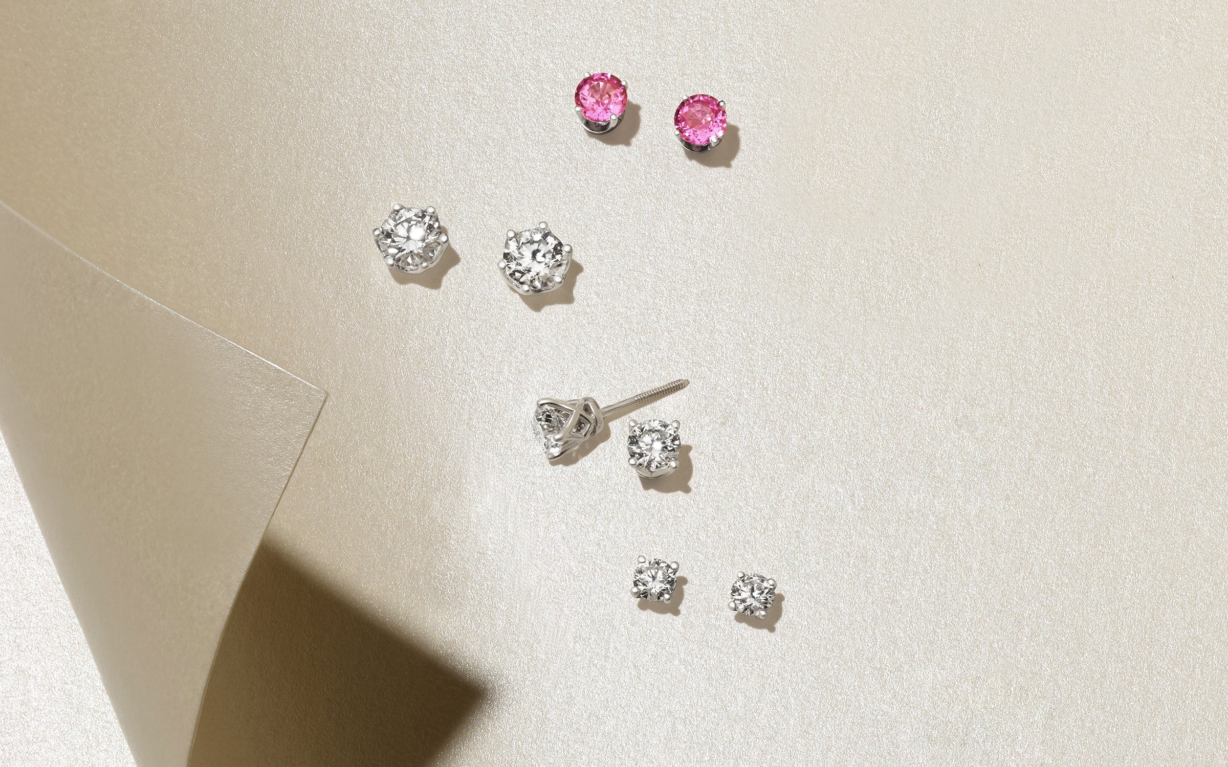 Stud earrings are a popular gift for a reason. This classic, simple style can vary from colorful to colorless, small to big, adorned or unassuming. The options are endless, which means almost every woman has a pair of stud earrings that she loves to wear. At Shane Co., our studs are hand-matched with high-quality diamonds, rubies, sapphires and gemstones, for earrings that are truly built to last. They can even be personalized with expressive earring jackets to represent your personal style.