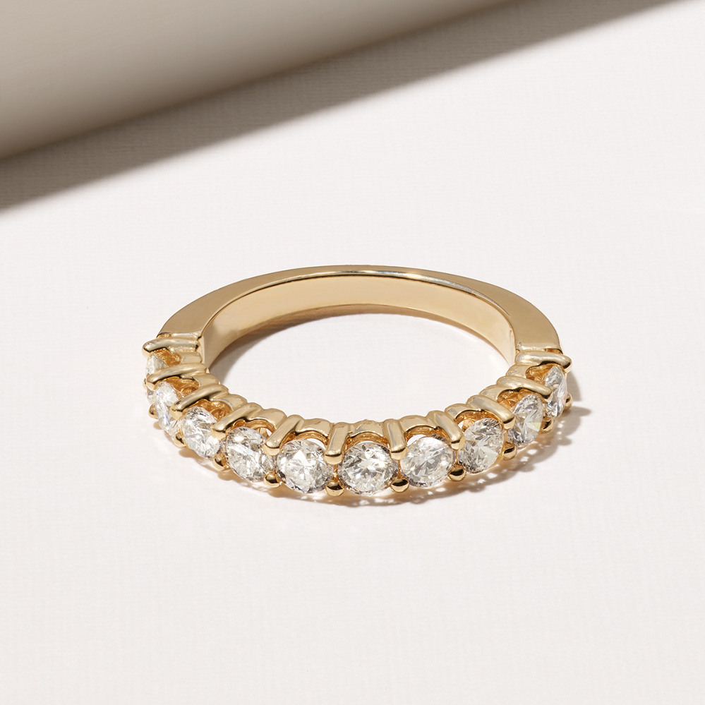 This band will add sparkle and fire alongside your engagement ring, or any ring stack. Crafted in warm 14-karat yellow gold, it features beautiful natural diamonds.